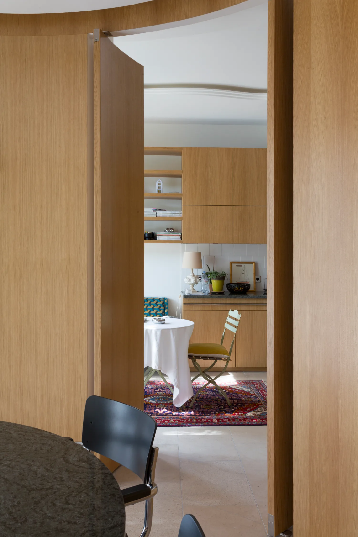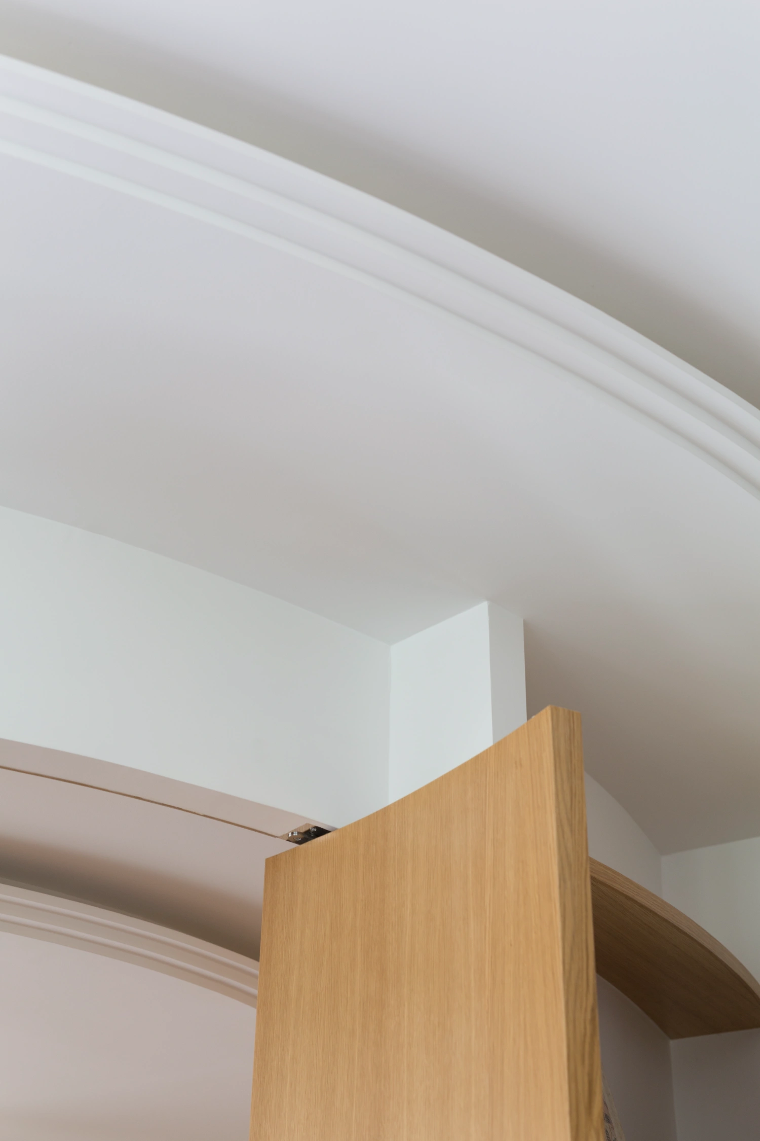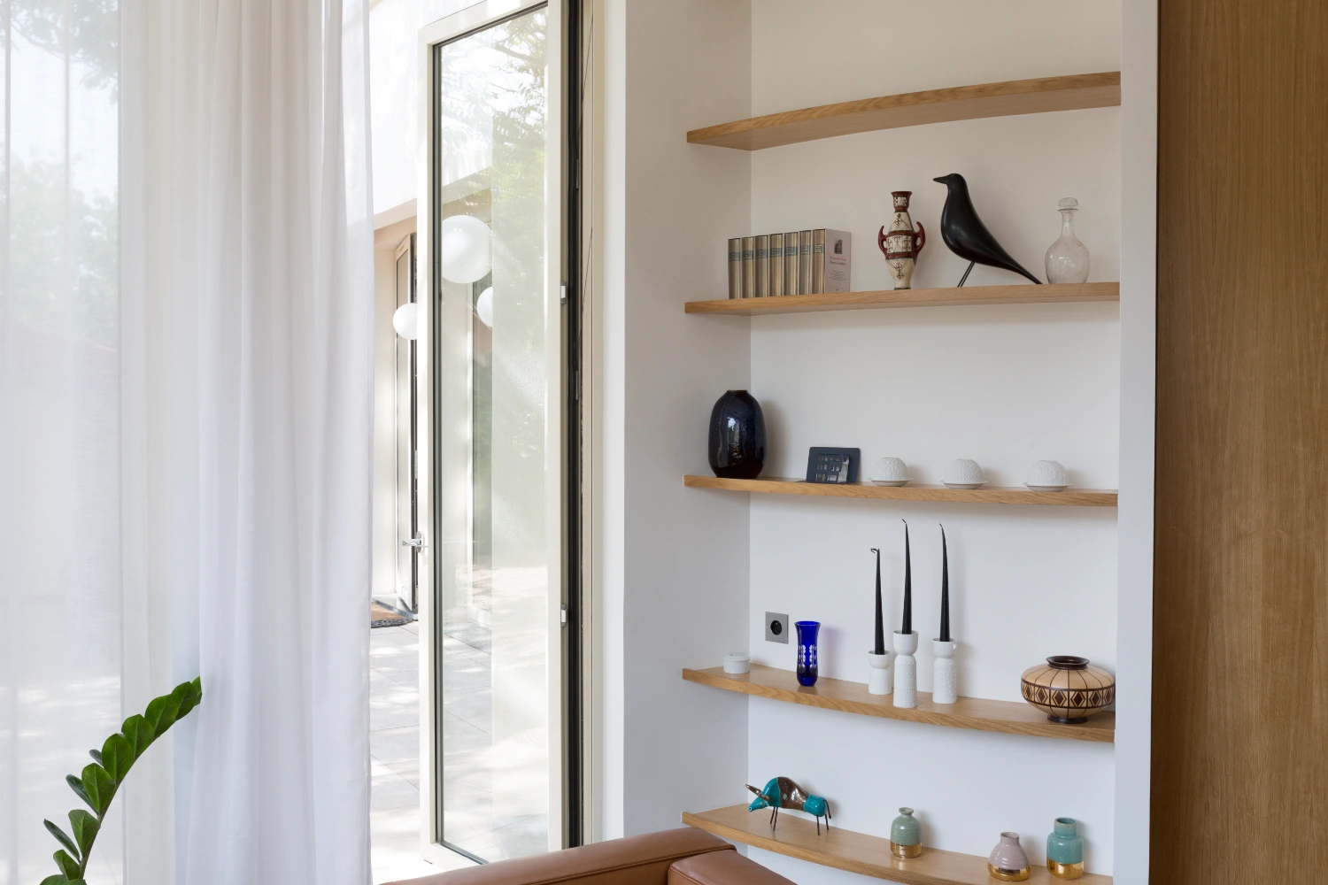 L’un des axes majeurs de cet aménagement d’hôtel particulier à La Rochelle repose sur la conception de menuiseries et d’agencements personnalisés. Bibliothèques, rangements intégrés et séparations d’espaces ont été réalisés sur mesure afin d’épouser parfaitement les volumes existants.