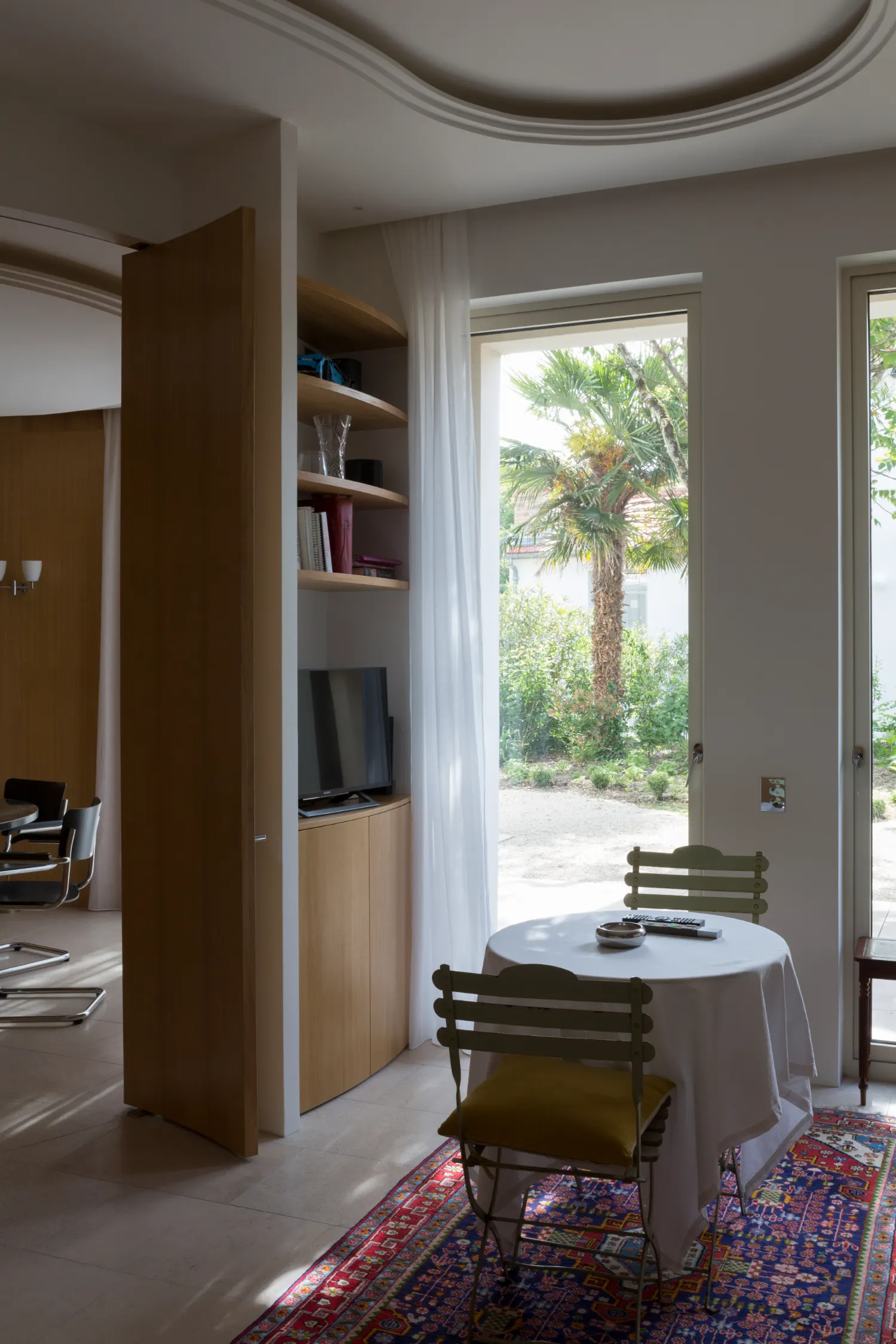 Chaque pièce a été conçue comme une continuité naturelle de l’architecture existante. Les lignes épurées, les teintes claires et les matériaux nobles participent à créer une atmosphère élégante et intemporelle. Le travail mené sur les perspectives et les circulations permet de fluidifier les espaces tout en valorisant la luminosité naturelle.